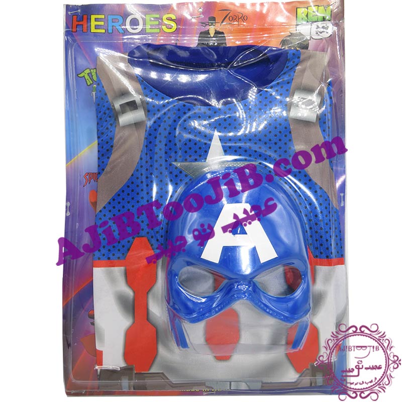 کاراکتر ابرقهرمان و محبوب کاپیتان آمریکا که با قدرت های فرا انسانی خود به مبارزه می پردازد. ست کامل بلوز، شلوار و نقاب پلاستیکی محکم (3 تکه)