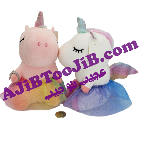 اسب شاخدار عروس با یک شاخ در وسط سر و بال های رنگین کمان می تواند برای هر بچه ای جذاب باشد. علاقه دختر بچه ها به دامن توری و رنگارنگ باعث می شود بیشتر جذب این عروس های شاخدار با نمک شوند. این عروسک ها قابل شستشو نیز می باشند، پس نگران کثیف شدن آن نشوید. به راحتی می توانید آن را در ماشین لباسشویی انداخته و شستشو دهید. مطوئن باشید بدون اینکه آسیبی به آن برسد، مثل روز اول تمیز خواهد شد. کیفیت مواد استفاده شده در این یونیکورن بالا بوده و به راحتی خراب نمی شود. این عروسک ها چون معمولا برای دختر بچه ها سفارش داده می شود، به رنگ های صورتی و سفید وارد بازار شده است.