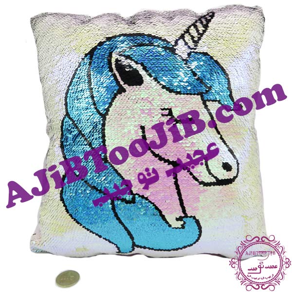 بالشت پولکی نرم و براق پونی با طراحی زیبا که با دست کشیدن بر روی پولک های بالشت رنگ بندی پونی عوض می شود